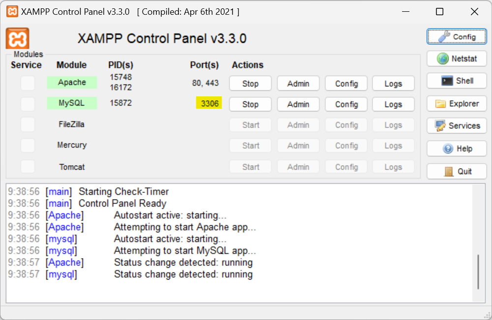El primer que cal fer, és, amb el xampp-control, assegurar-nos que la base de dades està en funcionament.