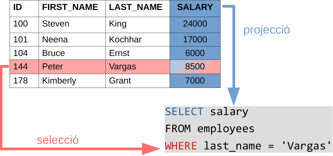 SELECTserà la projecció, és a dir, les columnes que veurem. -