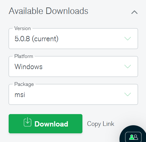 MongoDB ofereix una versió Enterprise i una versió Community de la seva potent base de dades de documents distribuïts. Nosaltres instal·larem i treballarem amb la versió Community. Per això caldrà anar a https://www.mongodb.com/try/download/community i descarregar-ne la darrera versió. En el moment de fer aquest document la 5.0.8.