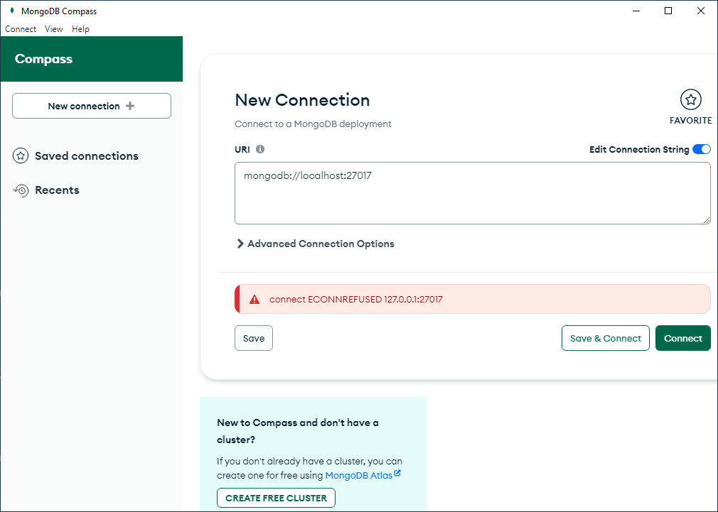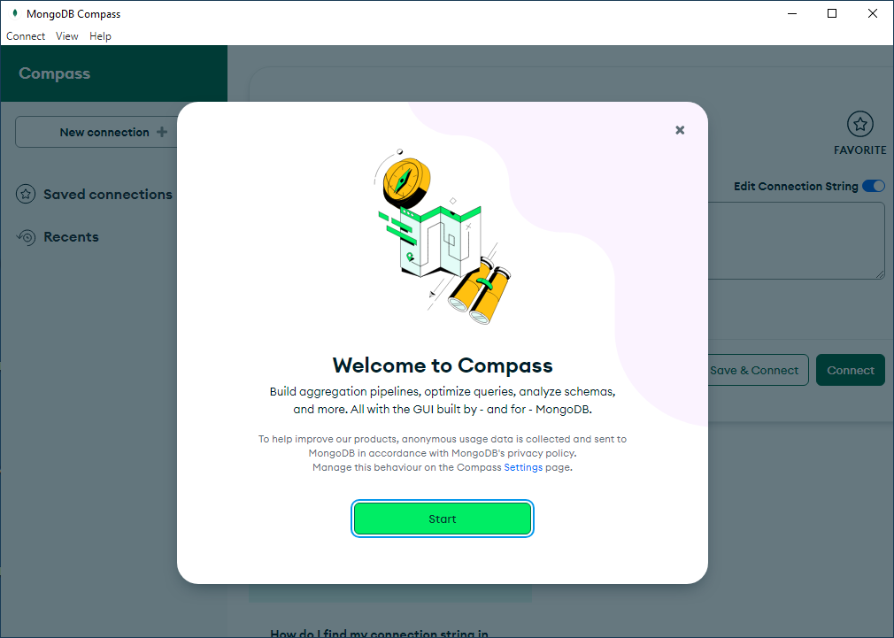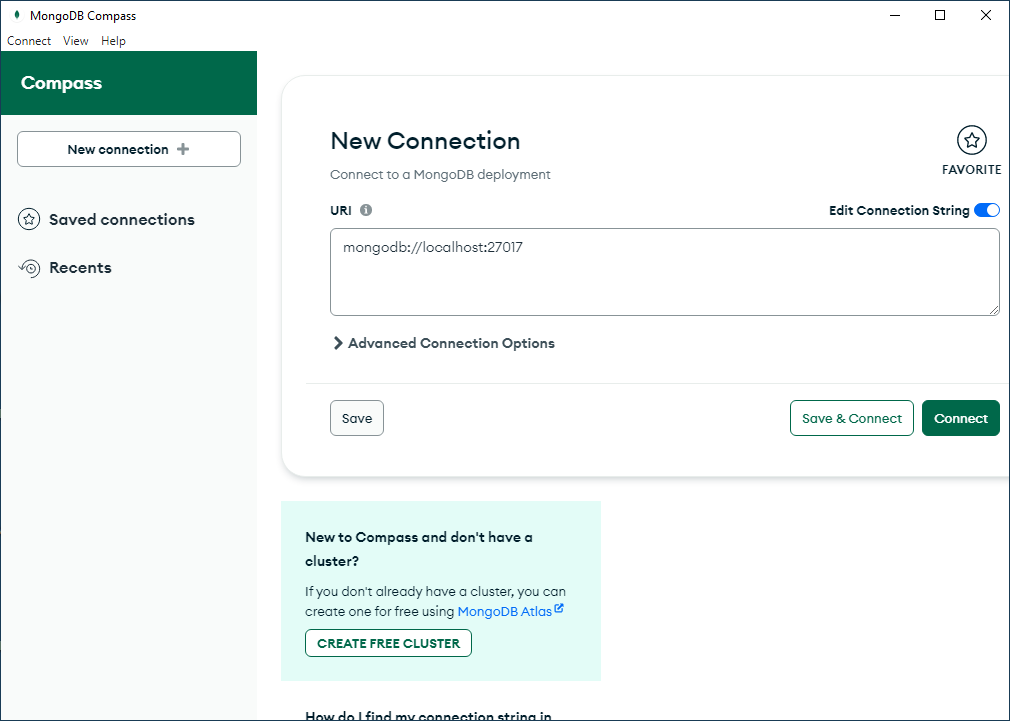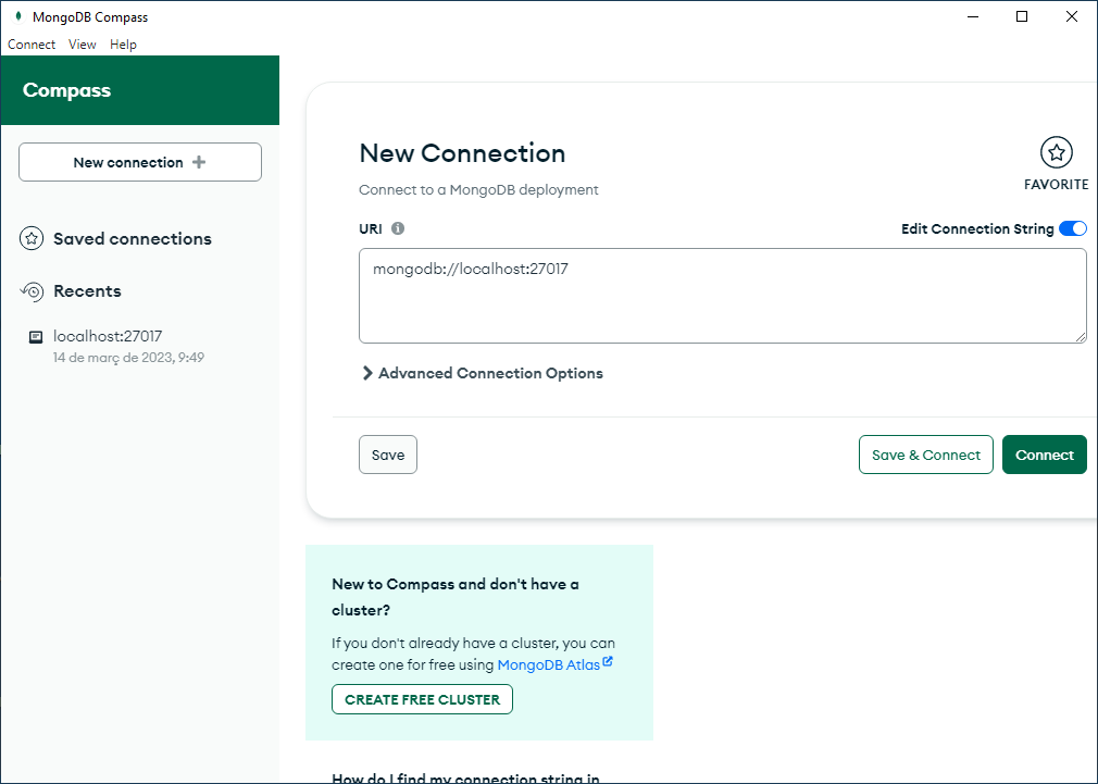 Ara ja podem connectar-nos des del MongoDBCompass amb la connexió que ens ofereix inicialment.
