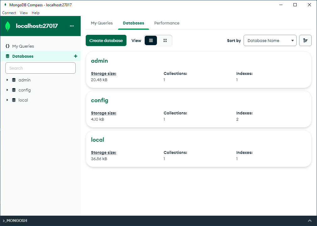 Crearem el fitxer mongosh.bat per tal que ens obri la shell del MongoDB.