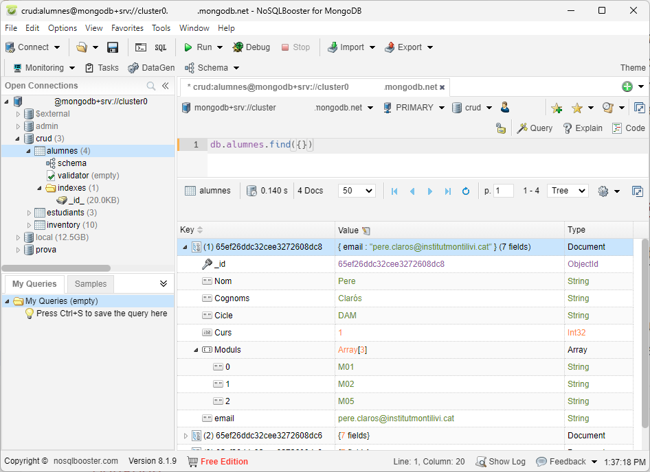 La instal·lació no ha de suposar cap problama i a l'executar l'aplicació caldrà utilitzar la cadena de connexió a la nostra plataforma de MongoDB Atlas.